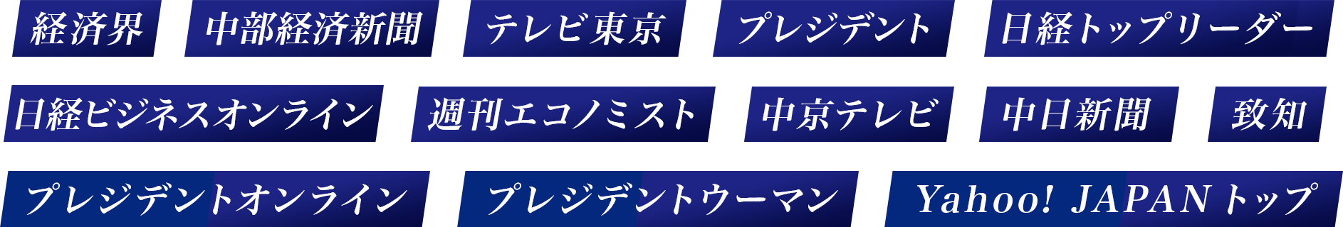 「経済界」「プレジデント」「日経トップリーダー」「日経ビジネスオンライン」「日経ARIA」「@DIME」「創業手帳」他多数。